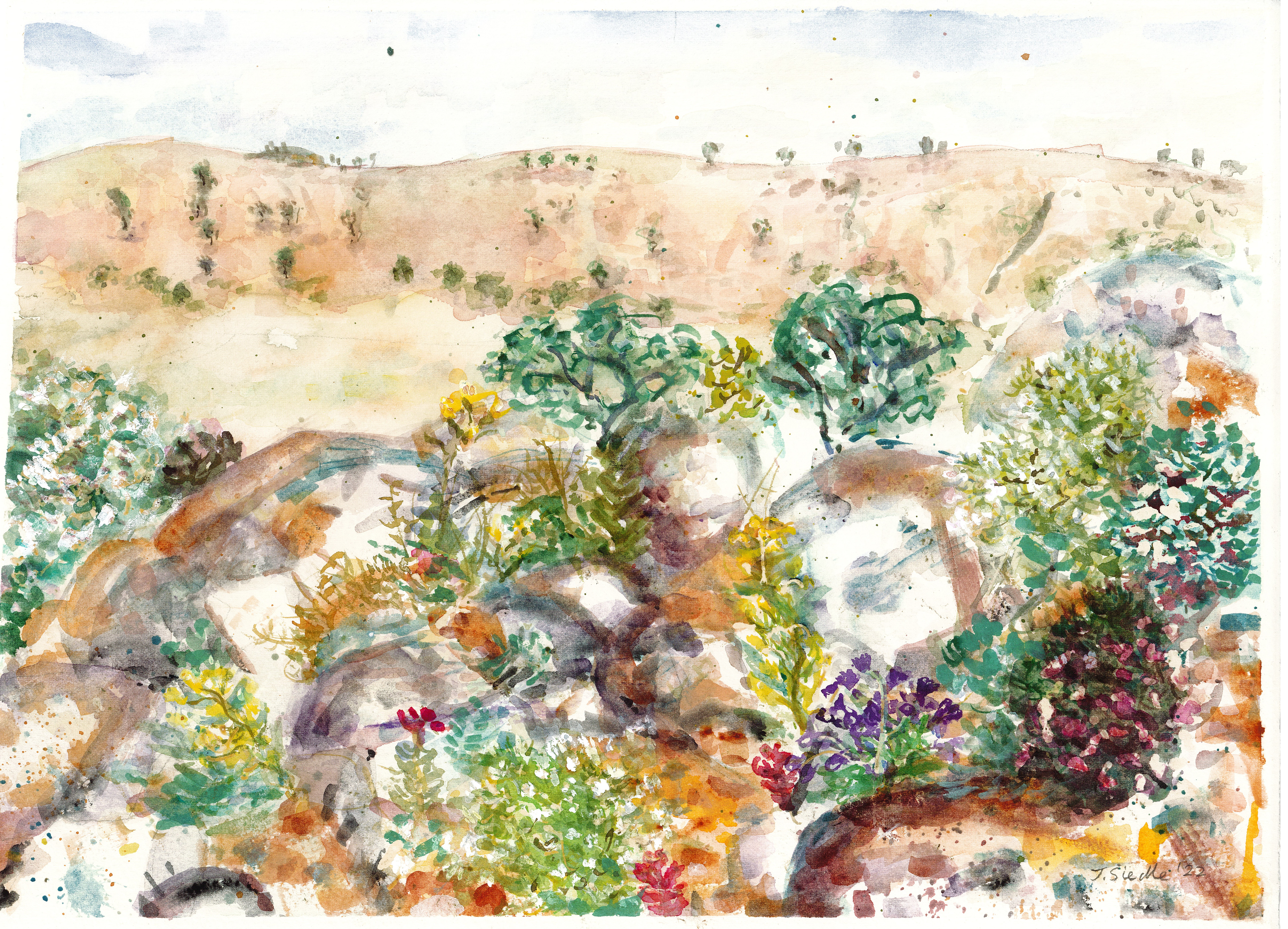 A group exhibition of plein air and subsequent works made by a group of women artists from NSW, SA and Vic, led by Nicole Kelly and Ashley Frost, who participated in the weeklong excursion to Fowlers Gap, a UNSW Arid Zone Research Station in north west NSW, in the Spring of 2022. The works document the beauty and colour of the dry arid zone landscape after sustained winter rains.